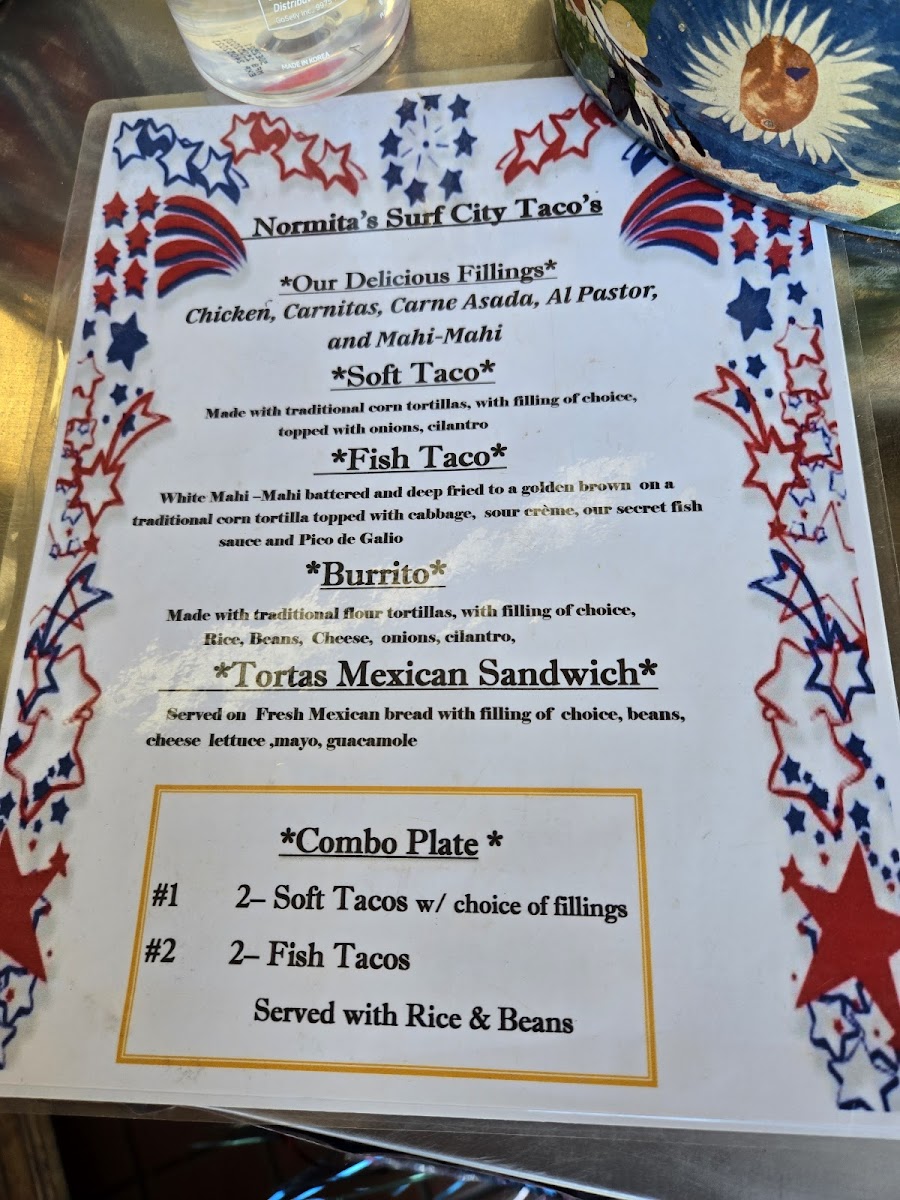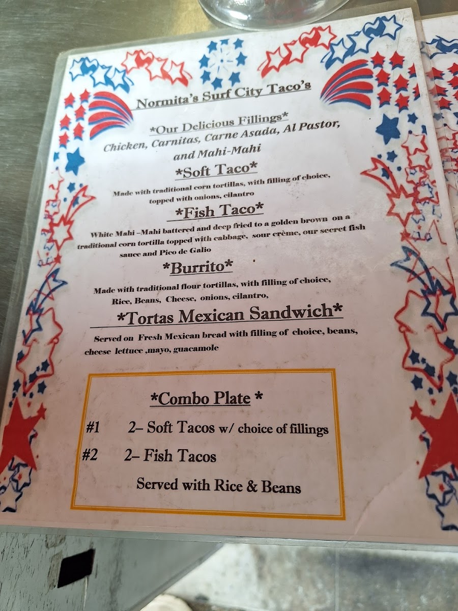 Normita's Surf City Taco Menu